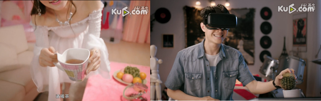但是,当VR被运用于移动视频直播时,人们所期望的互动显然就不能够被已有的方式所满足了。花椒的一则广告很生动地描绘出了观众所期望的互动与现实的矛盾:观众想要接过主播递来的水,却不慎握住了桌上的仙人球;想要与主播跳舞却把房间里的东西撞得东倒西歪……